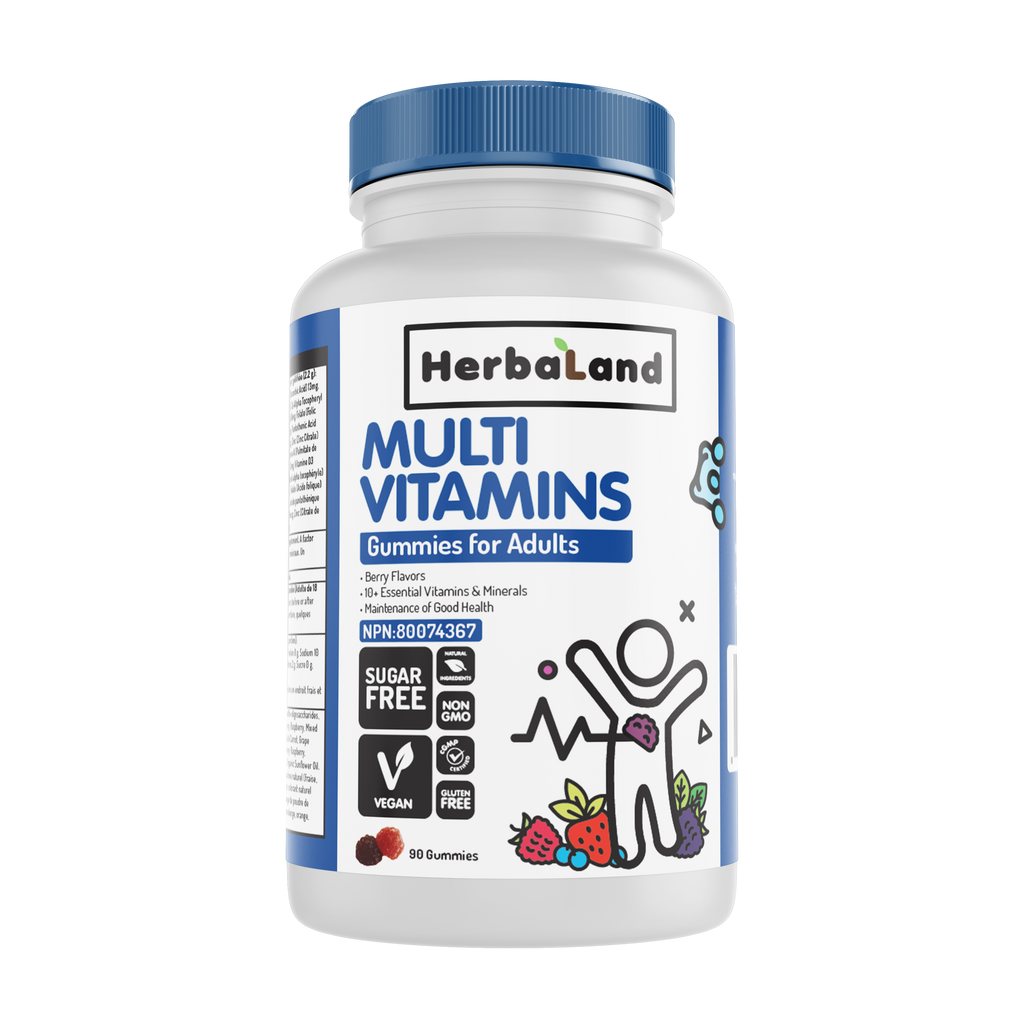 Herbaland 成人综合维生素软糖内含13种维生素和矿物质。帮助维持均衡营养、促进新陈代谢和支持健康的免疫系统。采用生物活性高的B12甲钴胺和天然维生素E,能直接被人体利用。